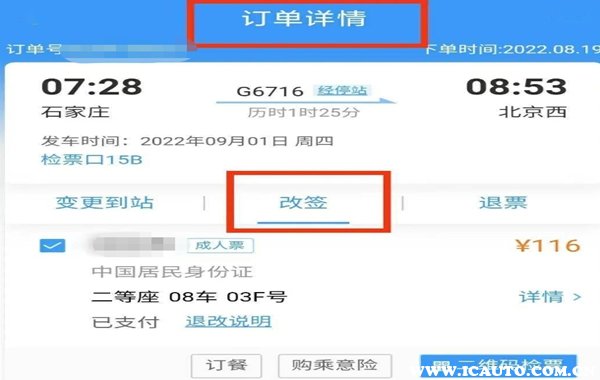 - 火车票改签的意思是已经买好了车票,但是因为临时有事,不能按时到车站乘车,那么这时候,改签就发挥作用了,改签能更改日期时间、...[详细]