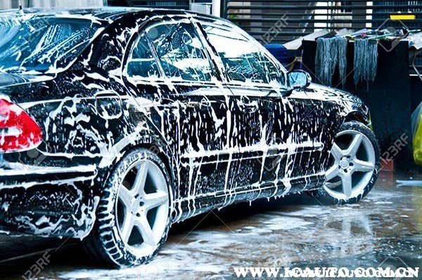 2、喷洒洗车液:喷洒专用的洗车液均匀地覆盖在车身上,不要使用肥皂或洗衣粉。