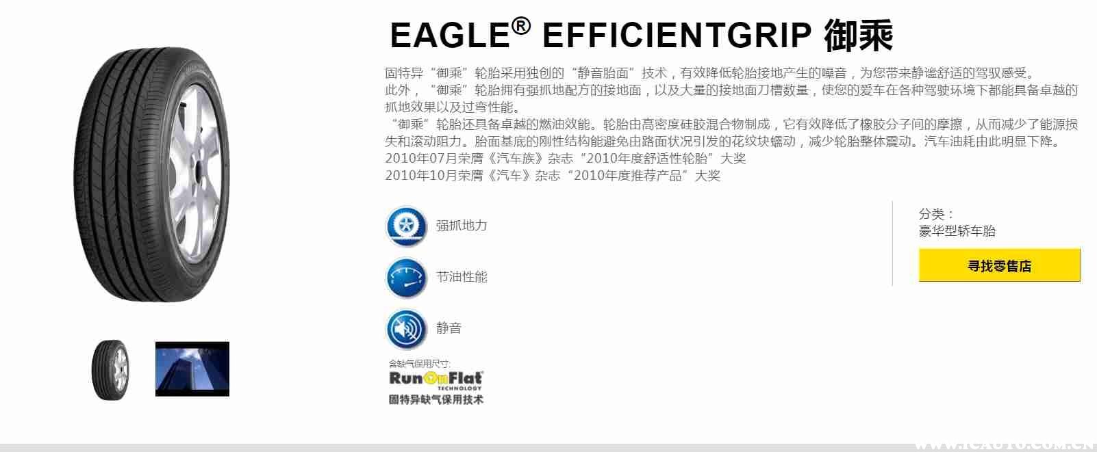 除了Eagle系列,固特异旗下的产品还包括了Excellence三能、Duraplus耐乘、Assurance系列等,分别为轿车和suv专用产品。其中:
