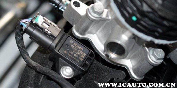进气压力传感器以真空管连接在进气歧管上,随着发动机不同的转速负荷,感应进气歧管内的真空变化,再从感知器内部电阻的改变,转换成电压信号,供ECU修正喷油量和点火正时角度。