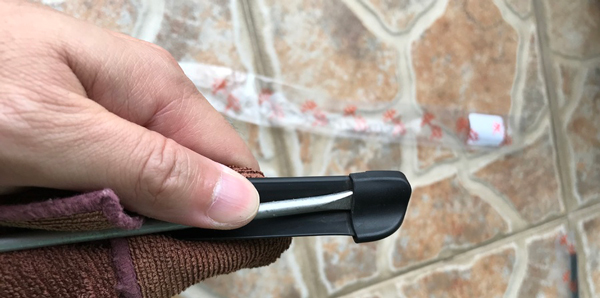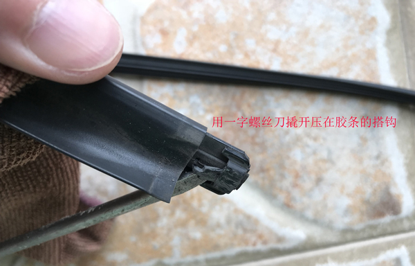14、安装完后,重新用螺丝刀将搭钩压紧胶条。